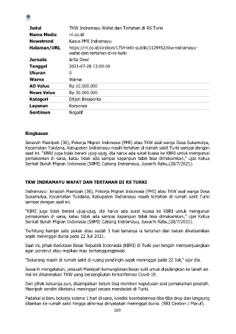 Judul TKW Indramayu Wafat dan Tertahan di RS Turki
