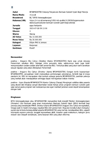 Judul BPJAMSOSTEK Dukung Penyaluran Bantuan Subsidi Upah Bagi Pekerja