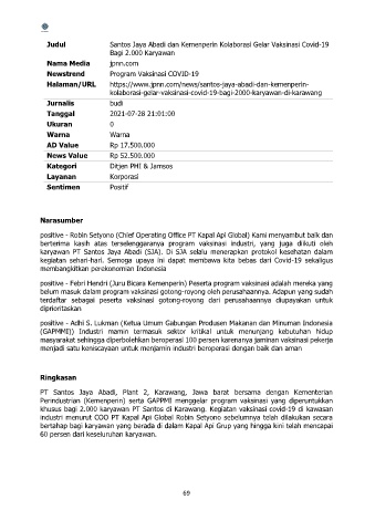 positive - Febri Hendri (Juru Bicara Kemenperin) Peserta program vaksinasi adalah mereka yang