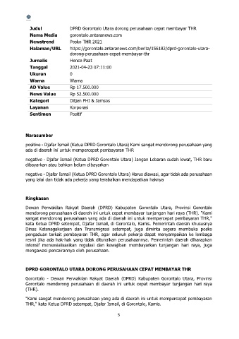 positive - Djafar Ismail (Ketua DPRD Gorontalo Utara) Kami sangat mendorong perusahaan yang