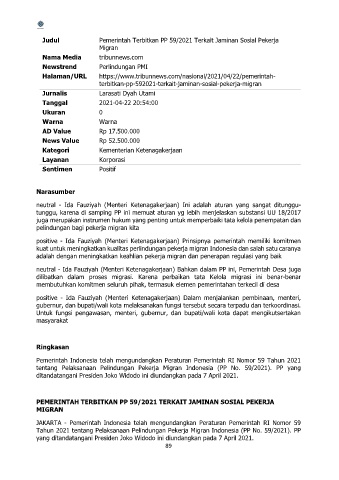 tentang Pelaksanaan Pelindungan Pekerja Migran Indonesia (PP No. 59/2021). PP yang