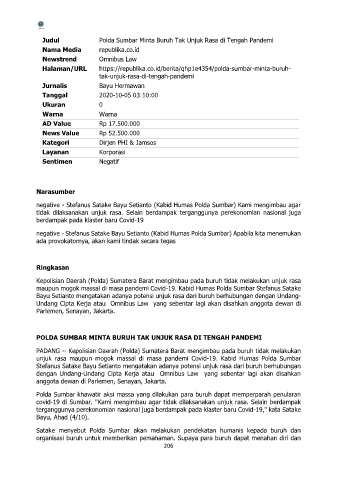 negative - Stefanus Satake Bayu Setianto (Kabid Humas Polda Sumbar) Kami mengimbau agar