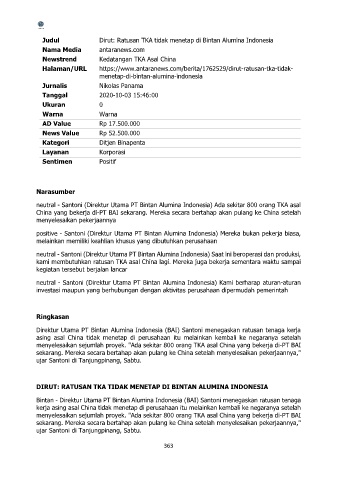 neutral - Santoni (Direktur Utama PT Bintan Alumina Indonesia) Ada sekitar 800 orang TKA asal