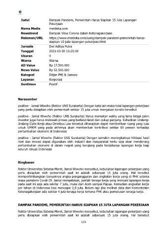 positive - Jamal Wiwoho (Rektor UNS Surakarta) Dengan kata lain maka total lapangan pekerjaan