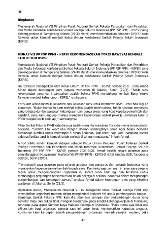 MUNAS VII PP FSP PPMI - KSPSI REKOMENDASIKAN YORIS RAWEYAI KEMBALI
