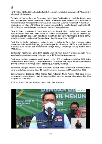 terdampak, maka jumlah PHK-nya juga paling banyak. Itu lah kenapa, UMP Jabar tidak dinaikkan