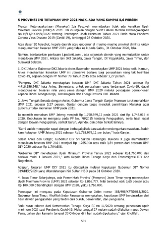 Minimum Provinsi (UMP) di 2021. Hal ini sejalan dengan Surat Edaran Menteri Ketenagakerjaan