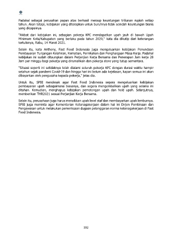 Untuk itu, SPBI mendesak agar Fast Food Indonesia segera mengeluarkan kebijakan