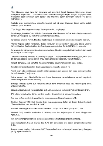 Berbagai lembaga survei pun ramai melakukan riset mengenai siapa saja menteri yang layak