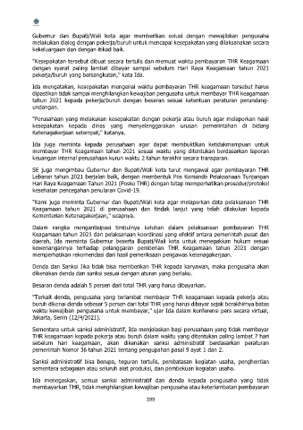 SE juga mengimbau Gubernur dan Bupati/Wali kota turut mengawal agar pembayaran THR