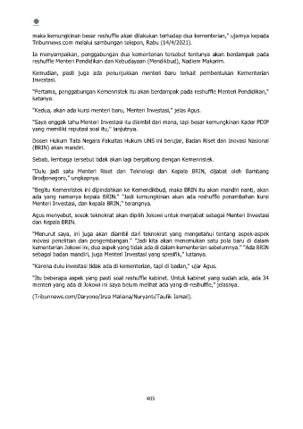 ada yang namanya kepala BRIN." "Jadi kemungkinan akan ada reshuffle penambahan kursi