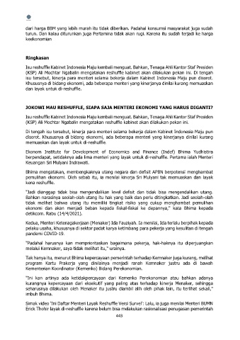 isu tersebut, kinerja para menteri selama bekerja dalam Kabinet Indonesia Maju pun disorot.