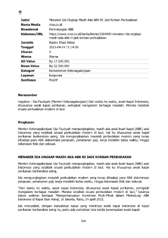 Judul Menaker Ida Ungkap Masih Ada ABK RI Jadi Korban Perbudakan