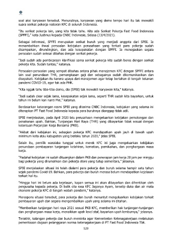 "Memberikan tunjangan hari raya 2021 sesuai PKB KFC, memberikan hak tunjangan-tunjangan