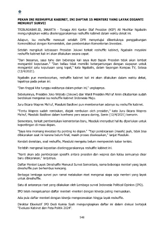 Daftar Menteri Layak Direshuffle Menurut Survei Sementara, nama beberapa menteri yang layak