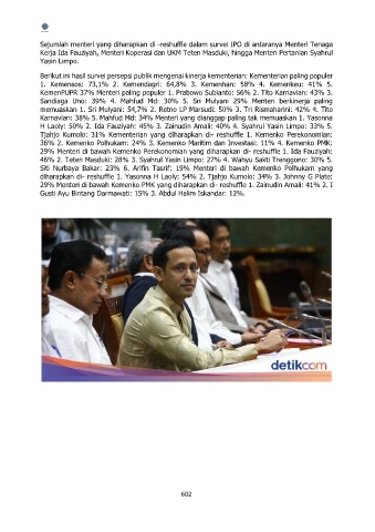 Sandiaga Uno: 39% 4. Mahfud Md: 30% 5. Sri Mulyani 29% Menteri berkinerja paling