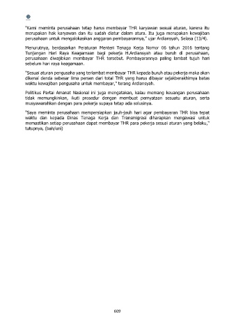 "Sesuai aturan pengusaha yang terlambat membayar THR kepada buruh atau pekerja maka akan