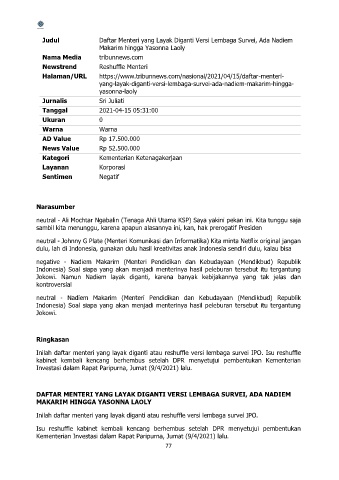 Halaman/URL https://www.tribunnews.com/nasional/2021/04/15/daftar-menteri-
