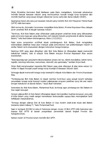 Sayangnya belum ada satu pun kawasan industri yang memiliki BLK Unit Pelayanan Teknis Pusat