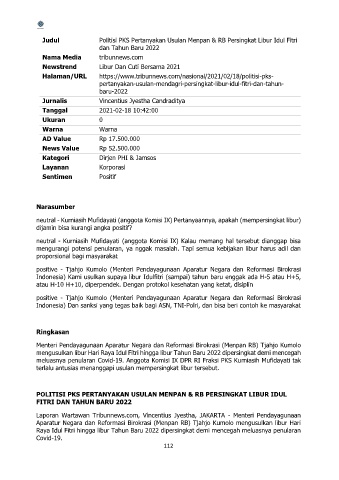 Judul Politisi PKS Pertanyakan Usulan Menpan & RB Persingkat Libur Idul Fitri
