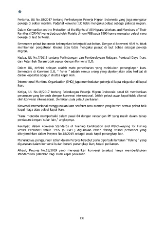 pekerja di sektor maritim. Padahal konvensi ILO tidak mengakui pelaut sebagai pekerja migran.