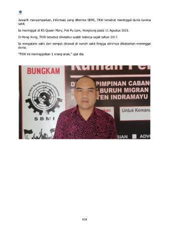 Juwarih menyampaikan, informasi yang diterima SBMI, TKW tersebut meninggal dunia karena