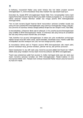 meringankan beban kami. Harapan kami semoga masyarakat Pasbar banyak yang ikut asuransi