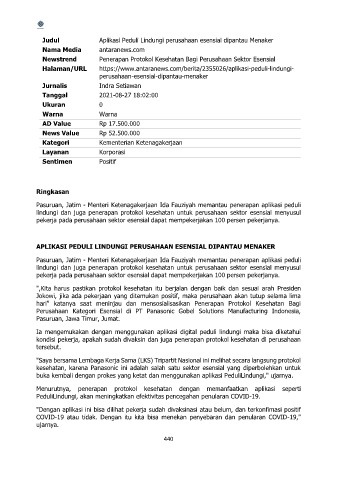 Page 441 - E-KLIPING KETENAGAKERJAAN 30 AGUSTUS 2021