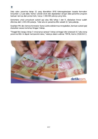 diterima oleh 2.093.038 pekerja. Total seluruh penerima BSU adalah 8,7 juta pekerja.