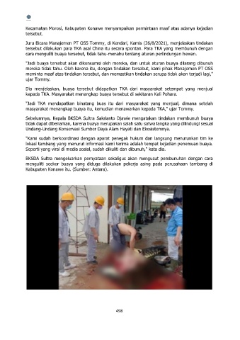 BKSDA Sultra mengeluarkan pernyataan sekaligus akan mengusut pembunuhan dengan cara