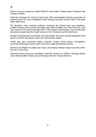 karantina mandiri bagi pekerja migran dari Indonesia dan Filipina.