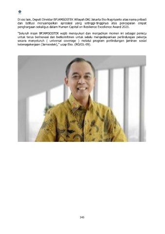 Di sisi lain, Deputi Direktur BPJAMSOSTEK Wilayah DKI Jakarta Eko Nugriyanto atas nama pribadi