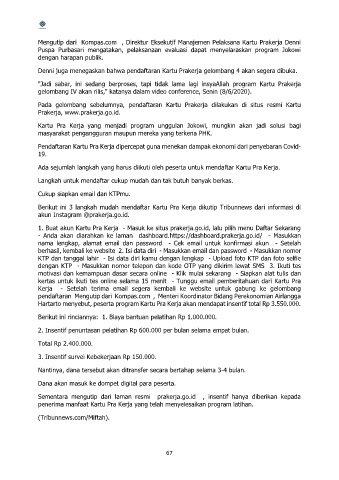 Mengutip dari Kompas.com , Direktur Eksekutif Manajemen Pelaksana Kartu Prakerja Denni