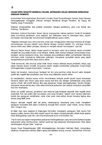 Ketenagakerjaan menggelar webinar bertajuk 'Berdamai dengan Pandemi: Be Happy, Be