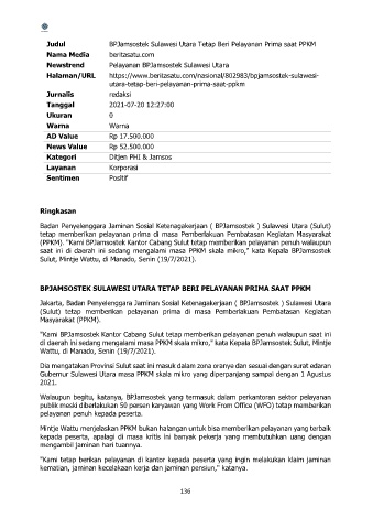Judul BPJamsostek Sulawesi Utara Tetap Beri Pelayanan Prima saat PPKM