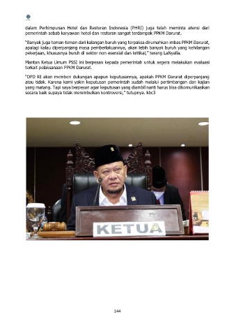 pekerjaan, khususnya buruh di sektor non esensial dan kritikal,” terang LaNyalla.