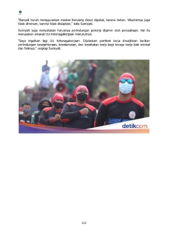 "Banyak buruh menggunakan masker berulang dicuci dipakai, karena beban. Vitaminnya juga