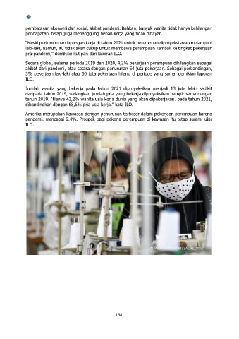 pembatasan ekonomi dan sosial, akibat pandemi. Bahkan, banyak wanita tidak hanya kehilangan