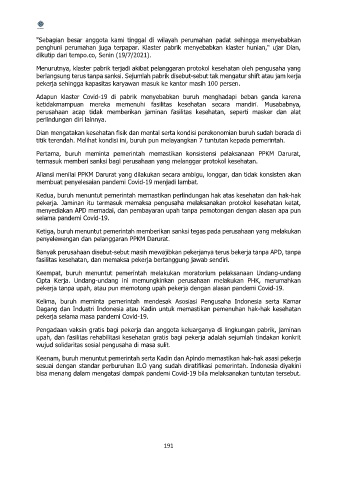 pekerja. Jaminan itu termasuk memaksa pengusaha melaksanakan protokol kesehatan ketat,