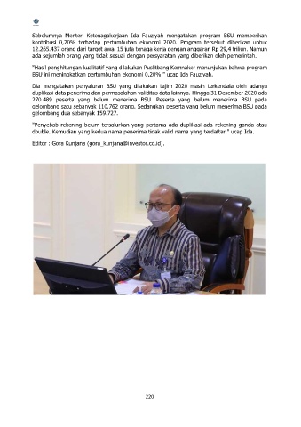 duplikasi data penerima dan permasalahan validitas data lainnya. Hingga 31 Desember 2020 ada
