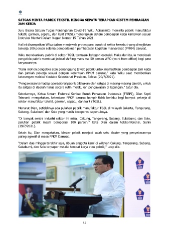 SATGAS MINTA PABRIK TEKSTIL HINGGA SEPATU TERAPKAN SISTEM PEMBAGIAN