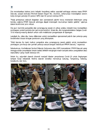 pembagian jumlah pekerja dan jam kerja tersebut. Selain itu, dia menginstruksikan Satgas Covid-