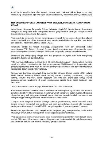 perpanjangan sampai akhir bulan Juli ini daya tahan pengusaha masih kuat dan tidak melakukan