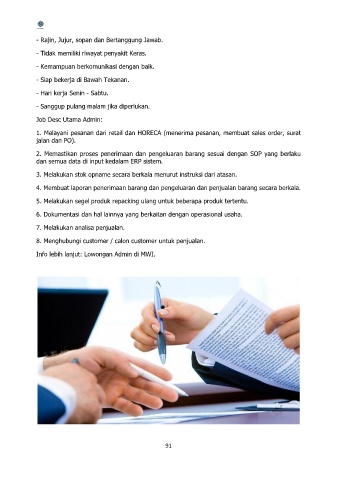 1. Melayani pesanan dari retail dan HORECA (menerima pesanan, membuat sales order, surat