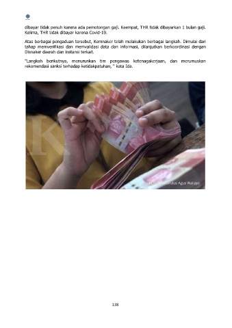 dibayar tidak penuh karena ada pemotongan gaji. Keempat, THR tidak dibayarkan 1 bulan gaji.