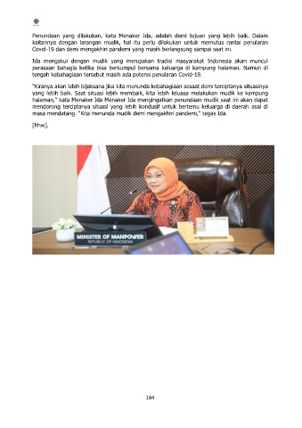halaman," kata Menaker Ida Menaker Ida mengingatkan penundaan mudik saat ini akan dapat