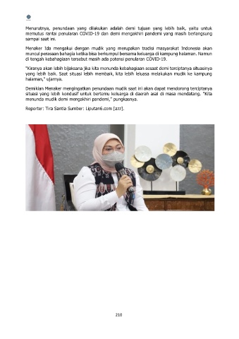 Menaker Ida mengakui dengan mudik yang merupakan tradisi masyarakat Indonesia akan
