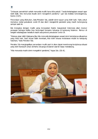 "Kita menunda mudik demi mengakhiri pandemi," tegas Ida. (OL-6).