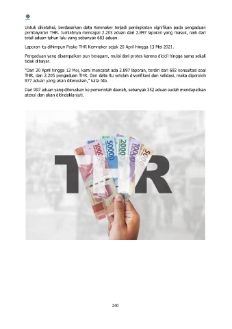 pembayaran THR. Jumlahnya mencapai 2.205 aduan dari 2.897 laporan yang masuk, naik dari