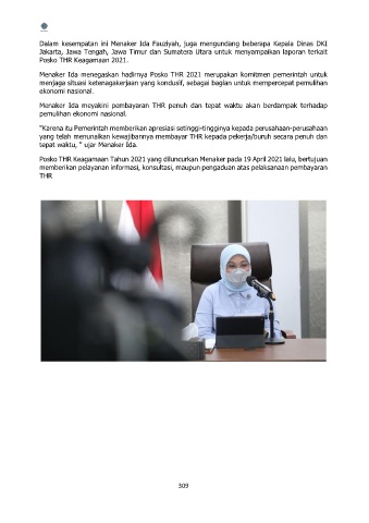 Menaker Ida menegaskan hadirnya Posko THR 2021 merupakan komitmen pemerintah untuk